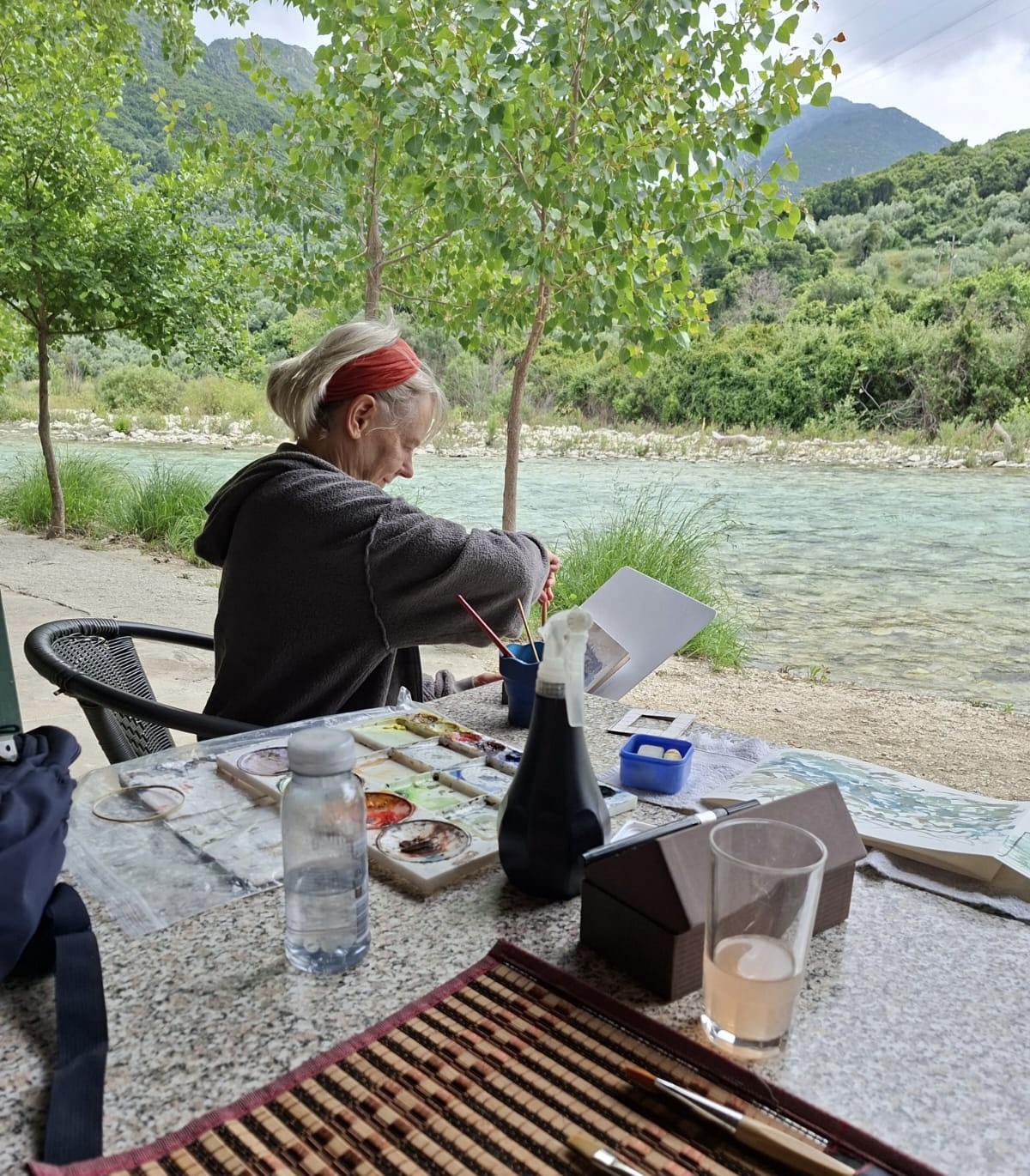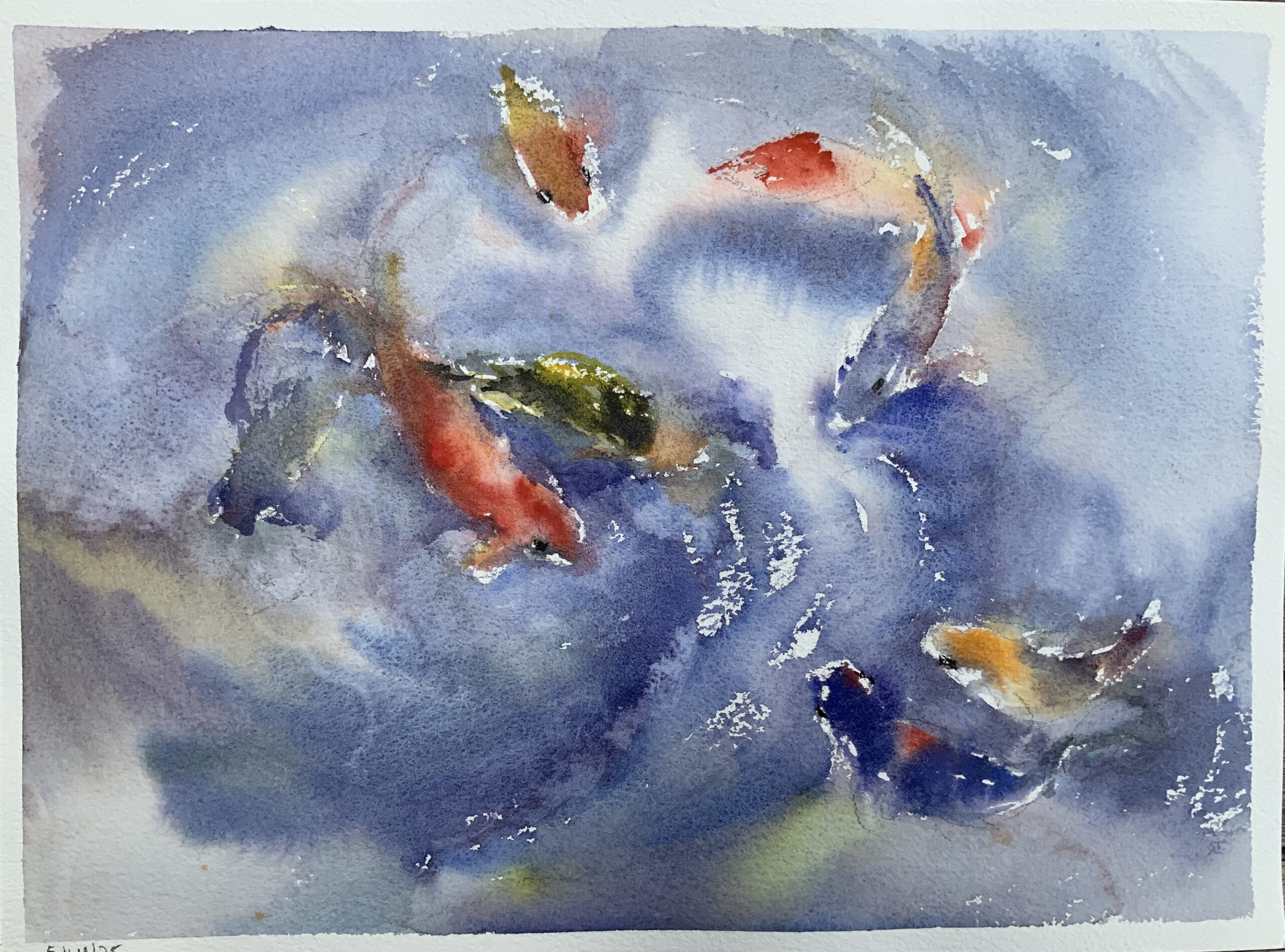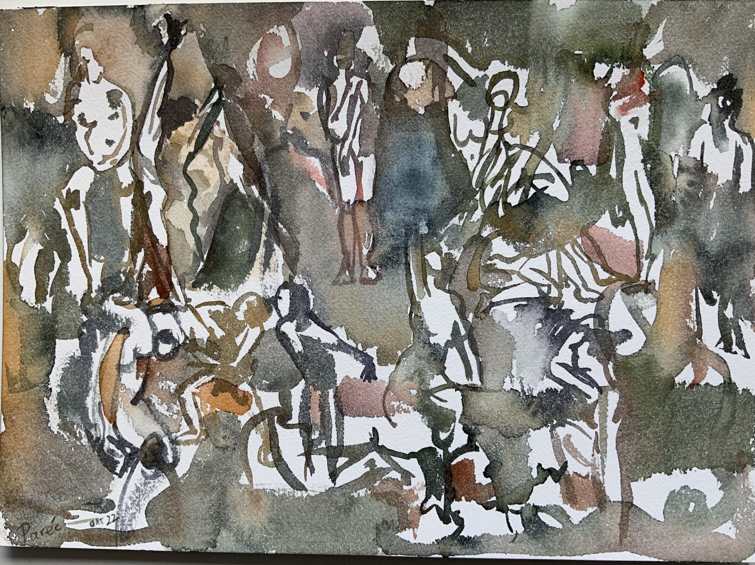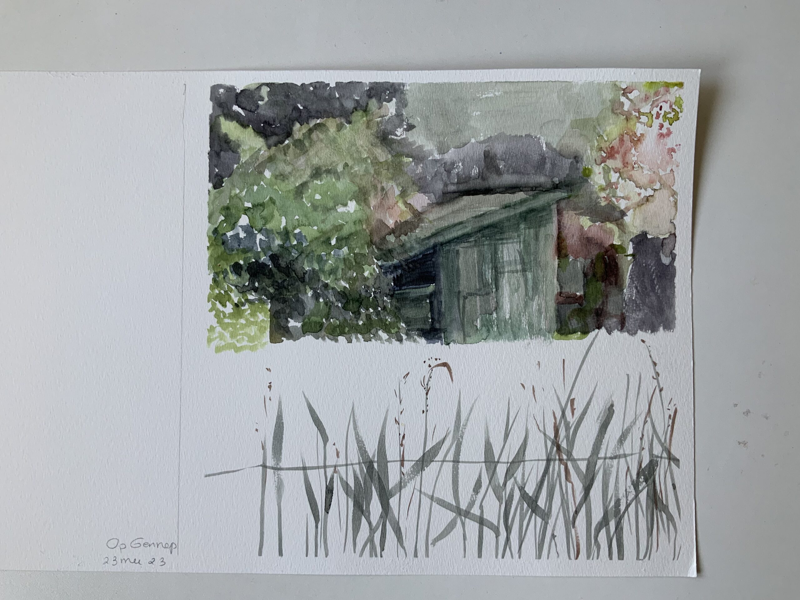 Mia van het MK-aquarel atelier reikte mij in 2016 een palet aan, dat bijzonder praktisch bleek en ik in de loop der tijd perfectioneerde met mijn eigen voorkeuren. Eigenlijk vind ik het leukste om kleuren te mengen, Voor aquarel, acrylverf en olieverf blijkt het benodigde palet overigens te verschillen.