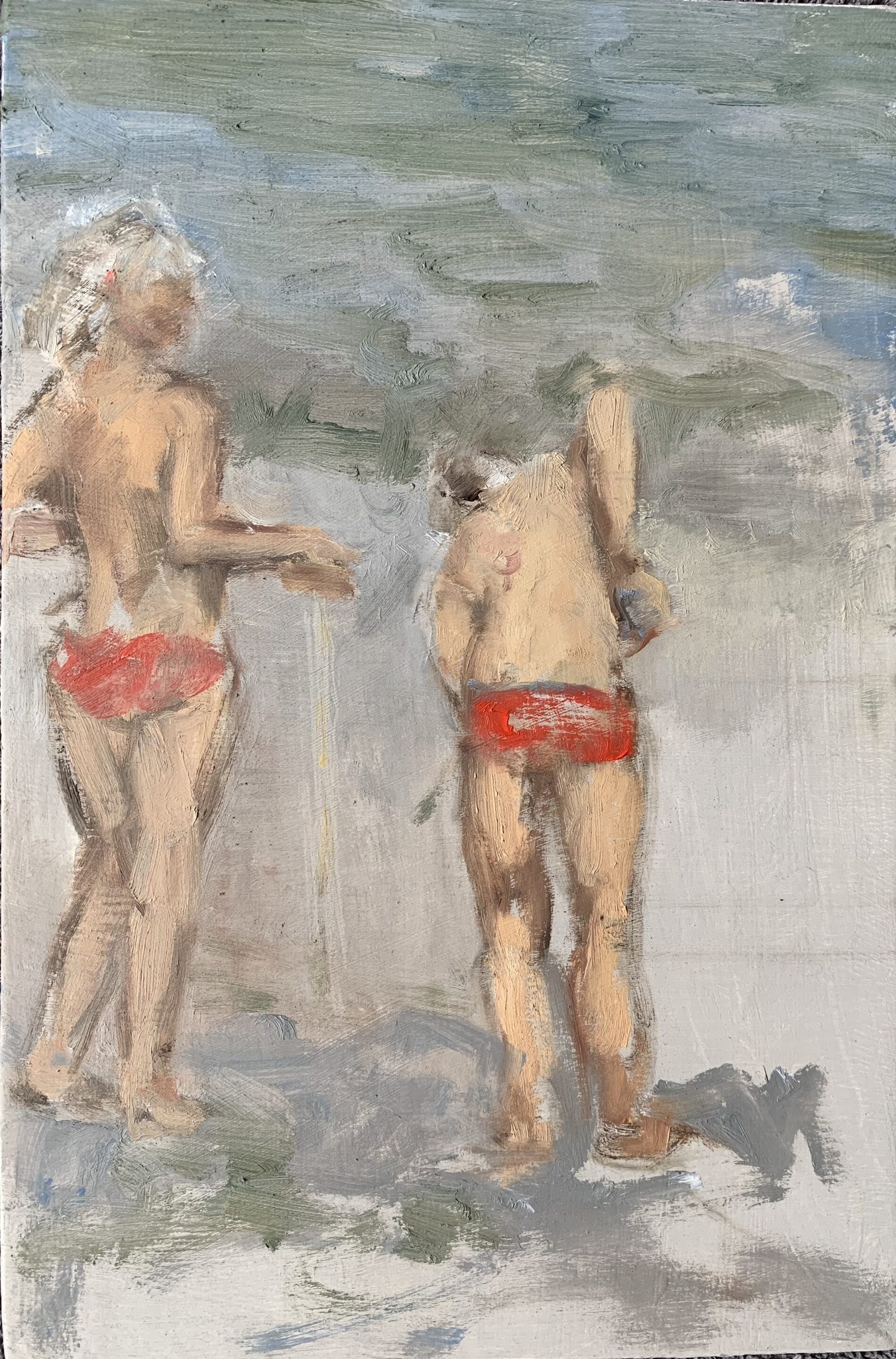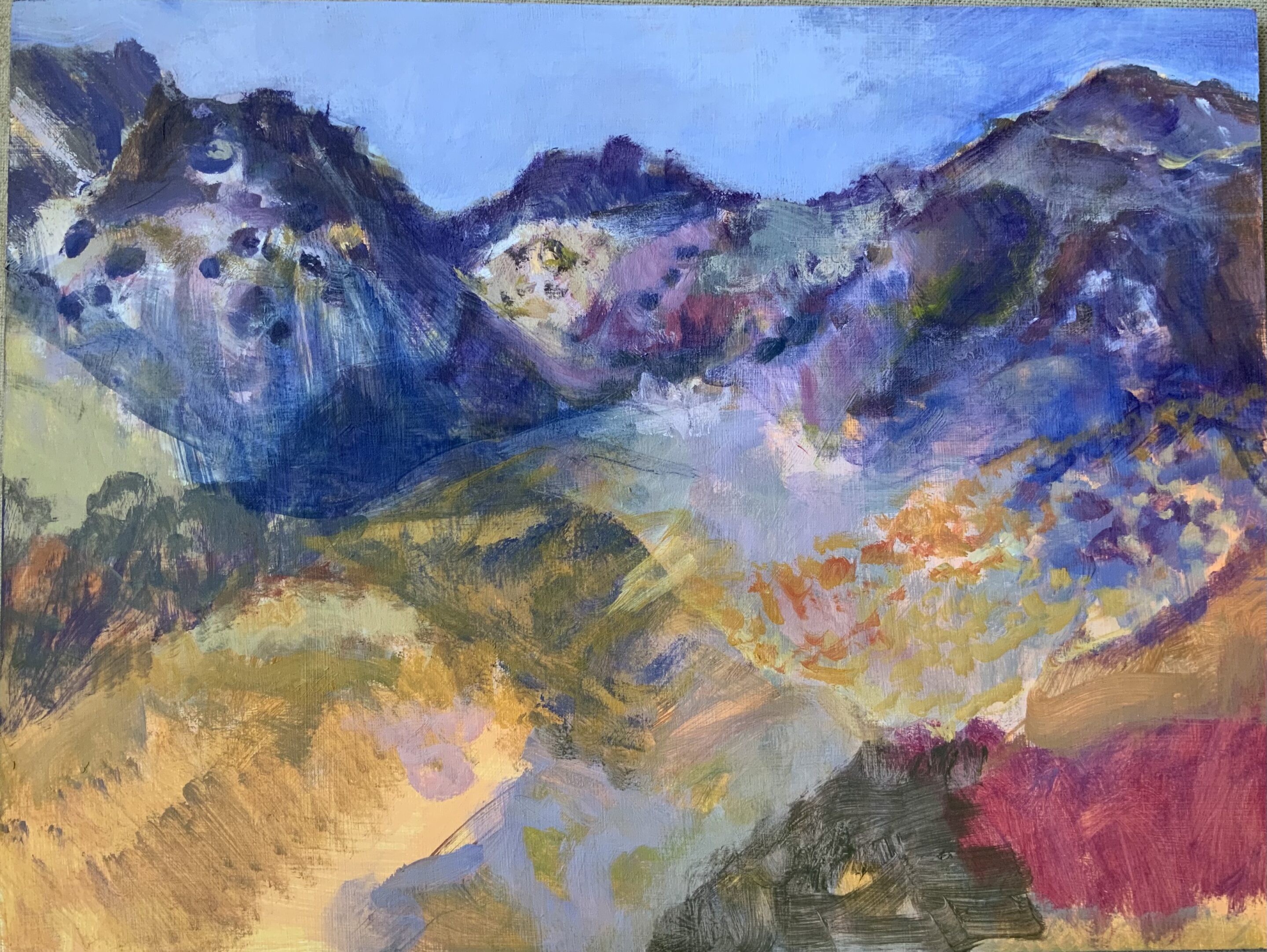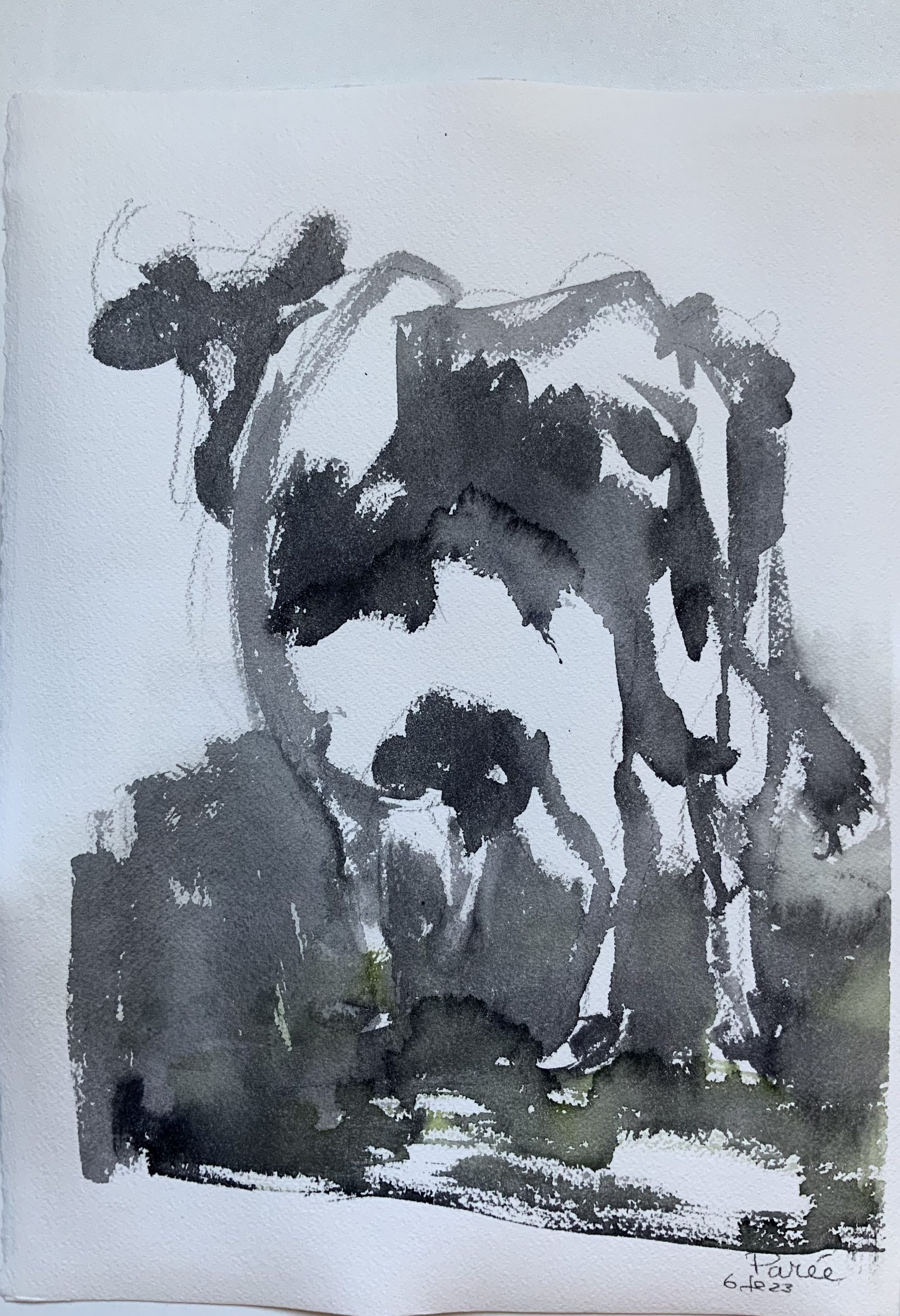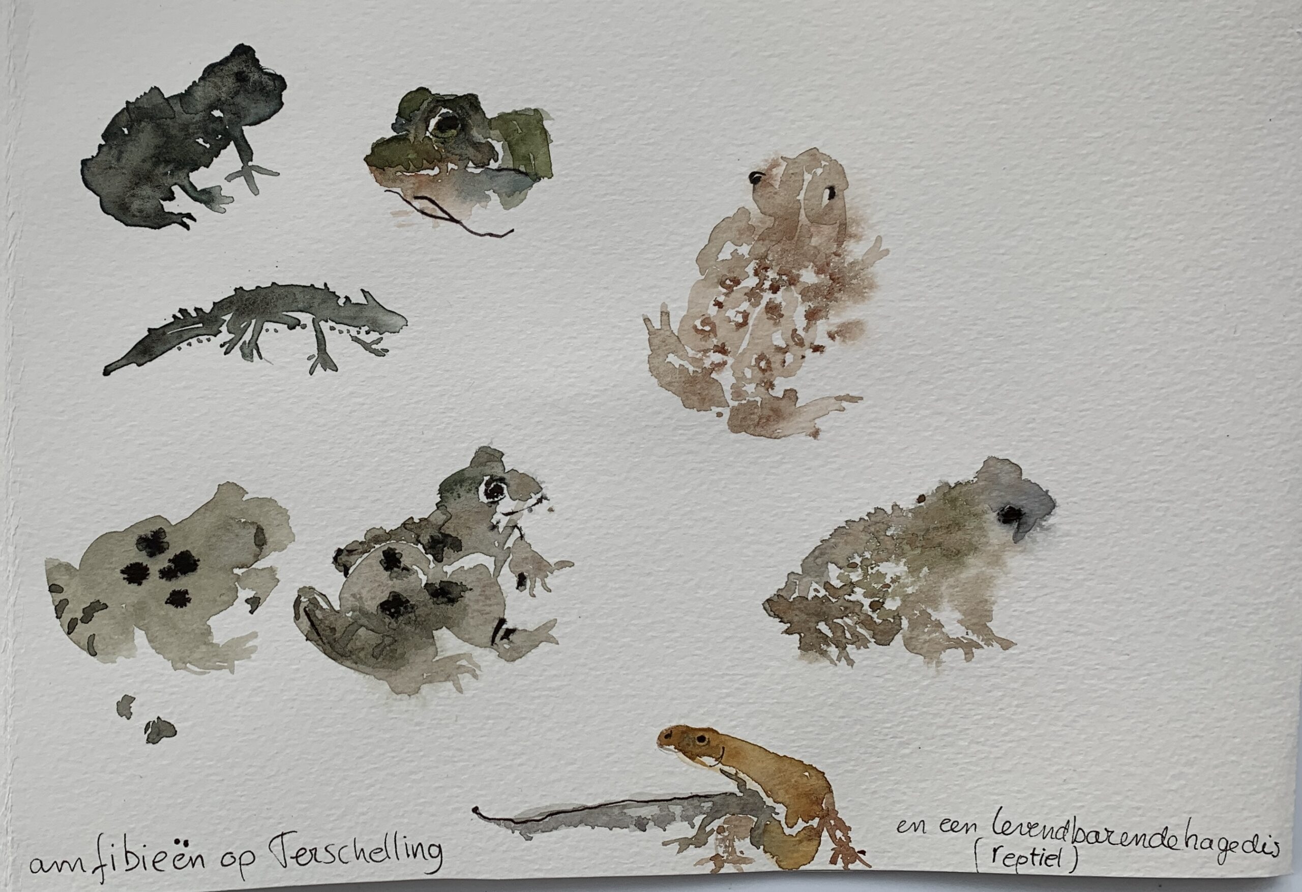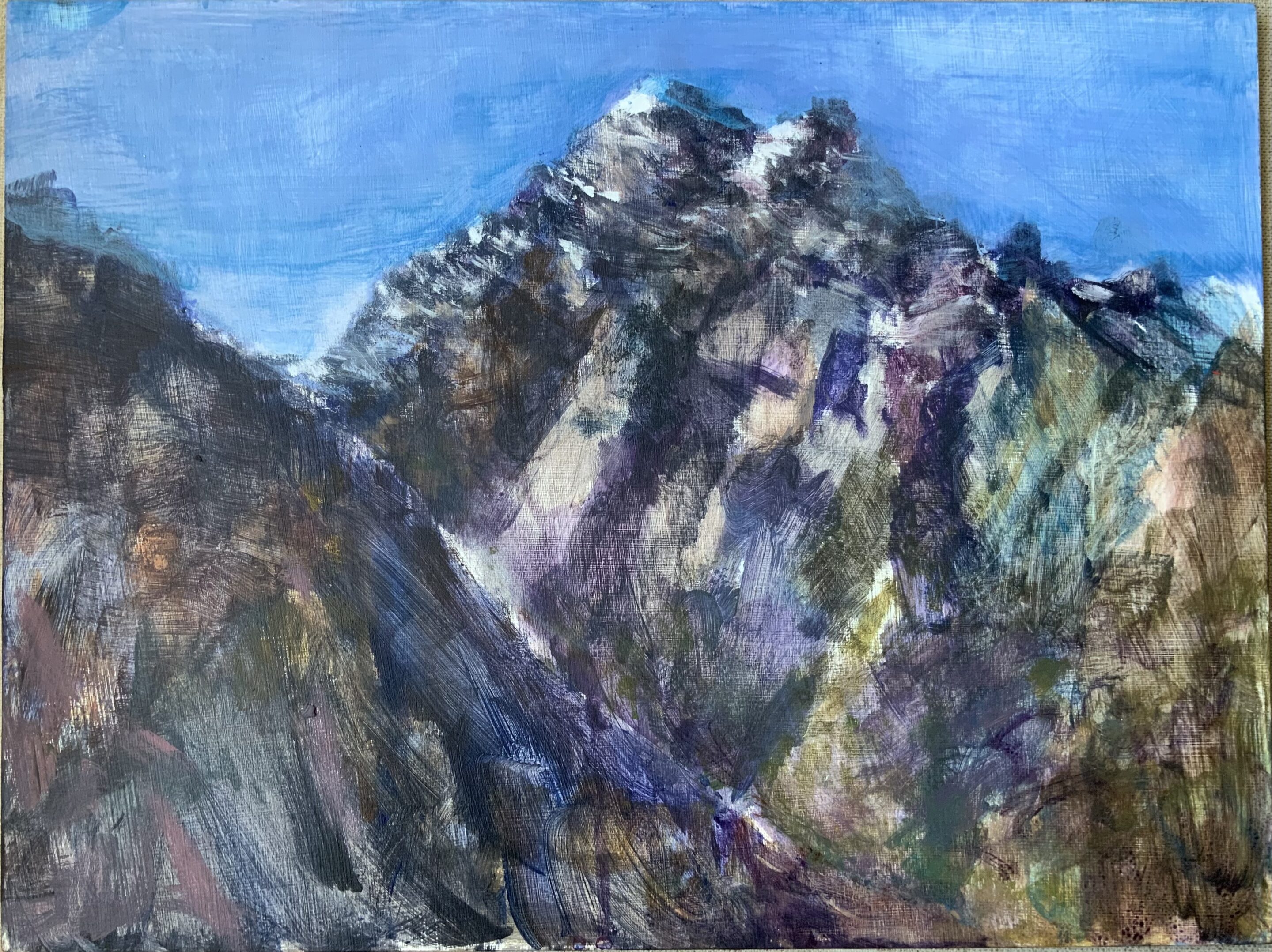 Sinds 2024 werk ik met acrylverf, voornamelijk omdat het praktisch is om het werk meteen droog mee te nemen in een reismap. De map is ook de reden dat het meeste van mijn werk een afmeting heeft van 40 cm bij 60cm.