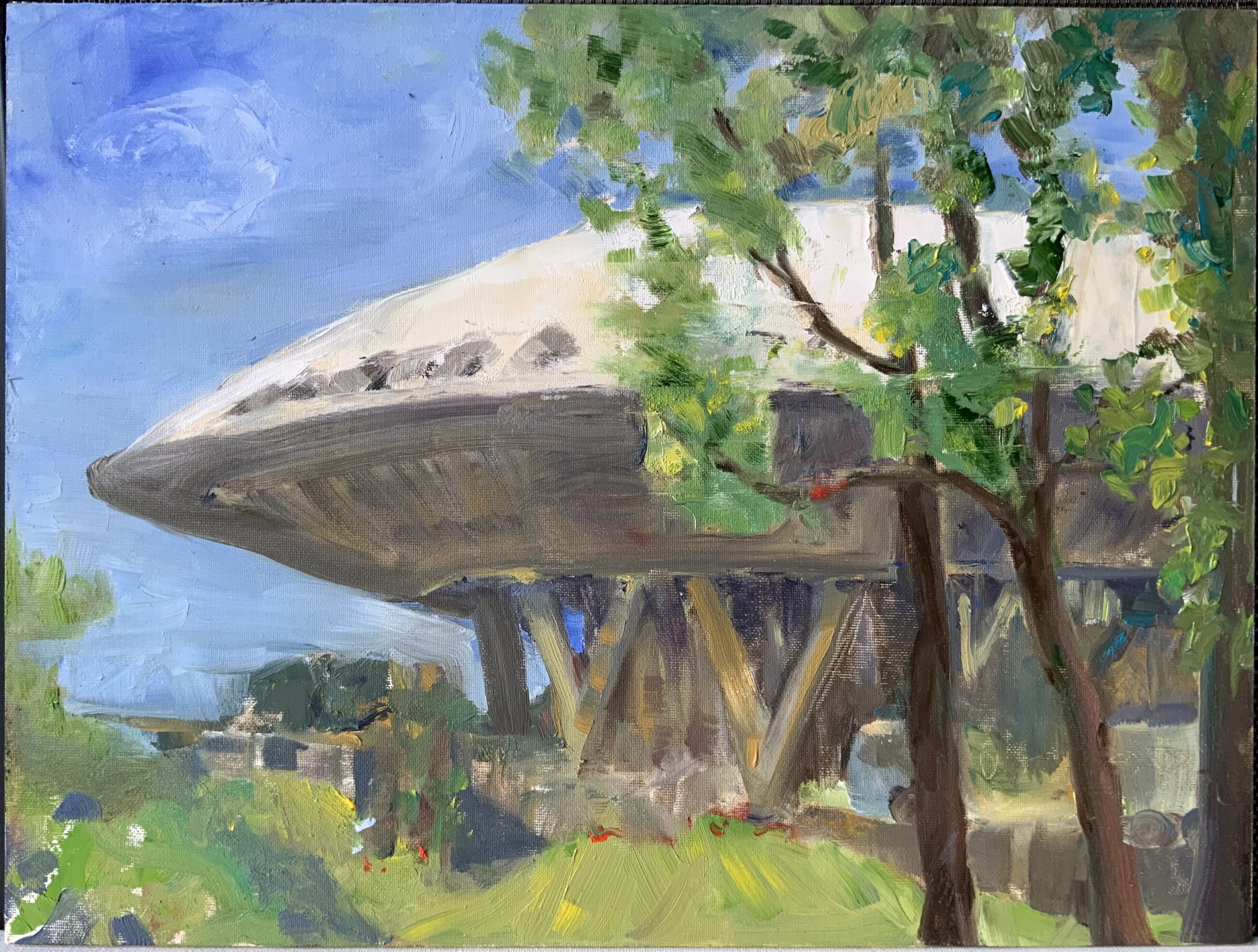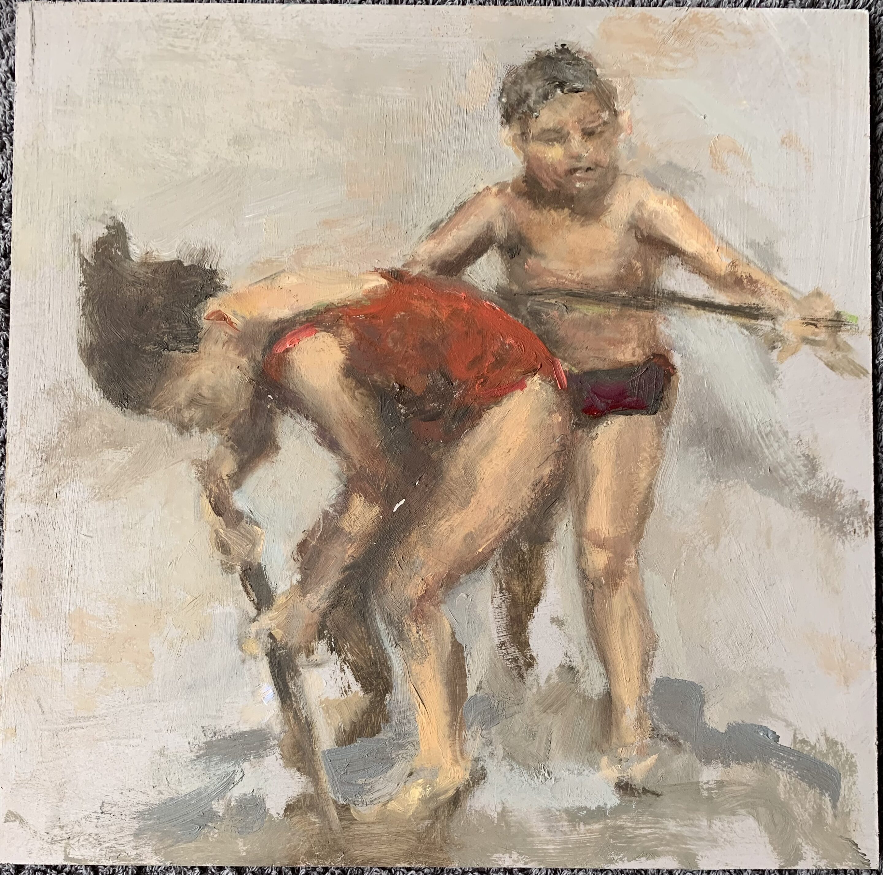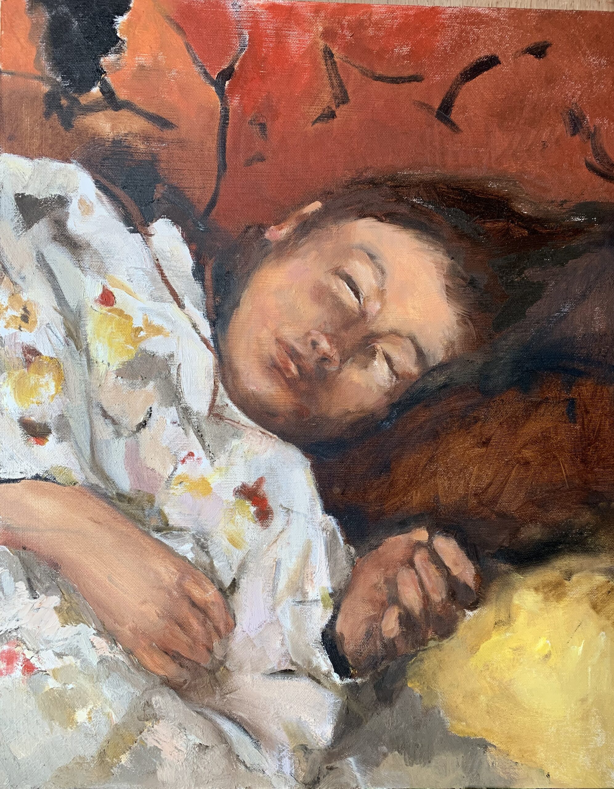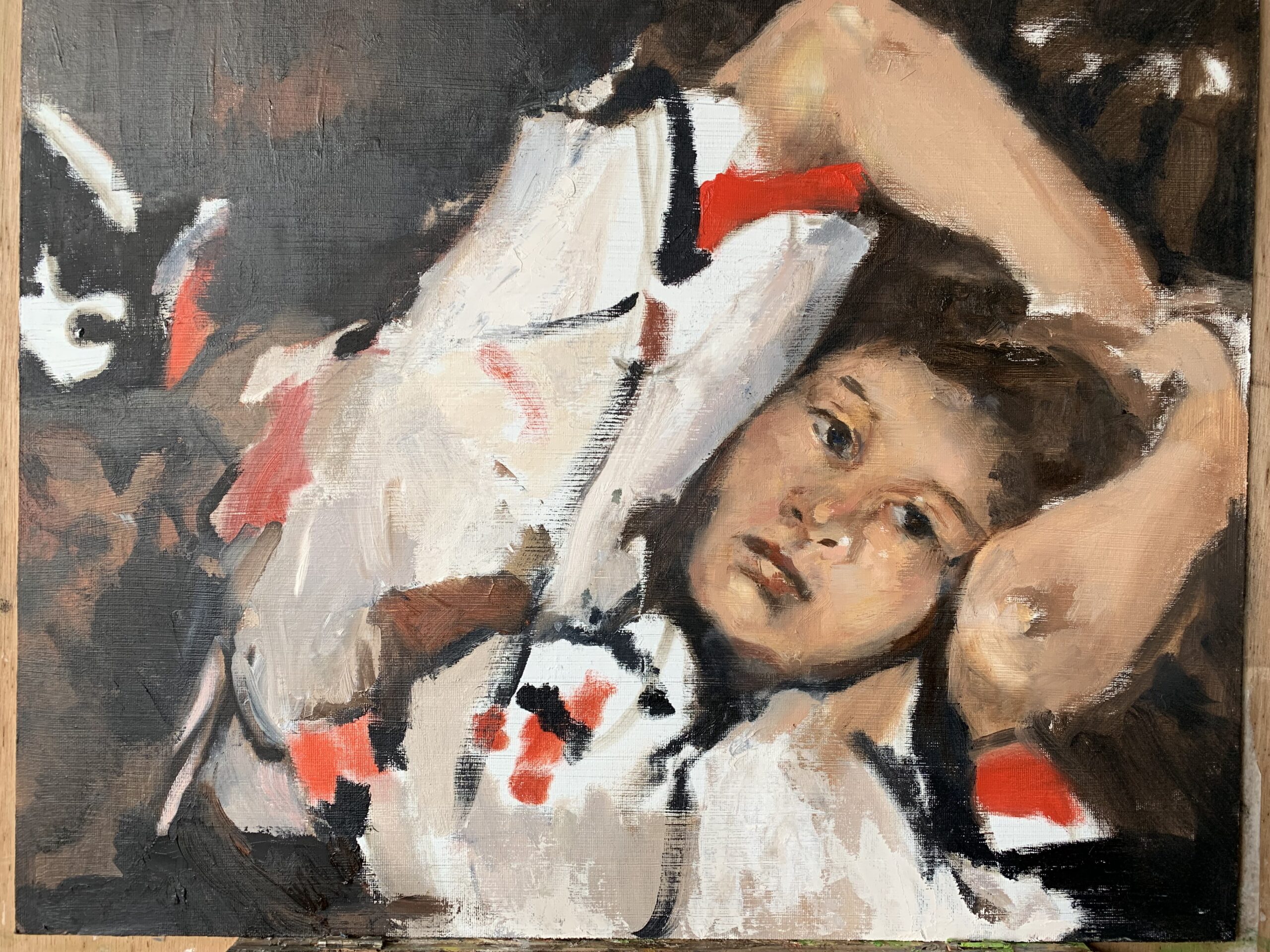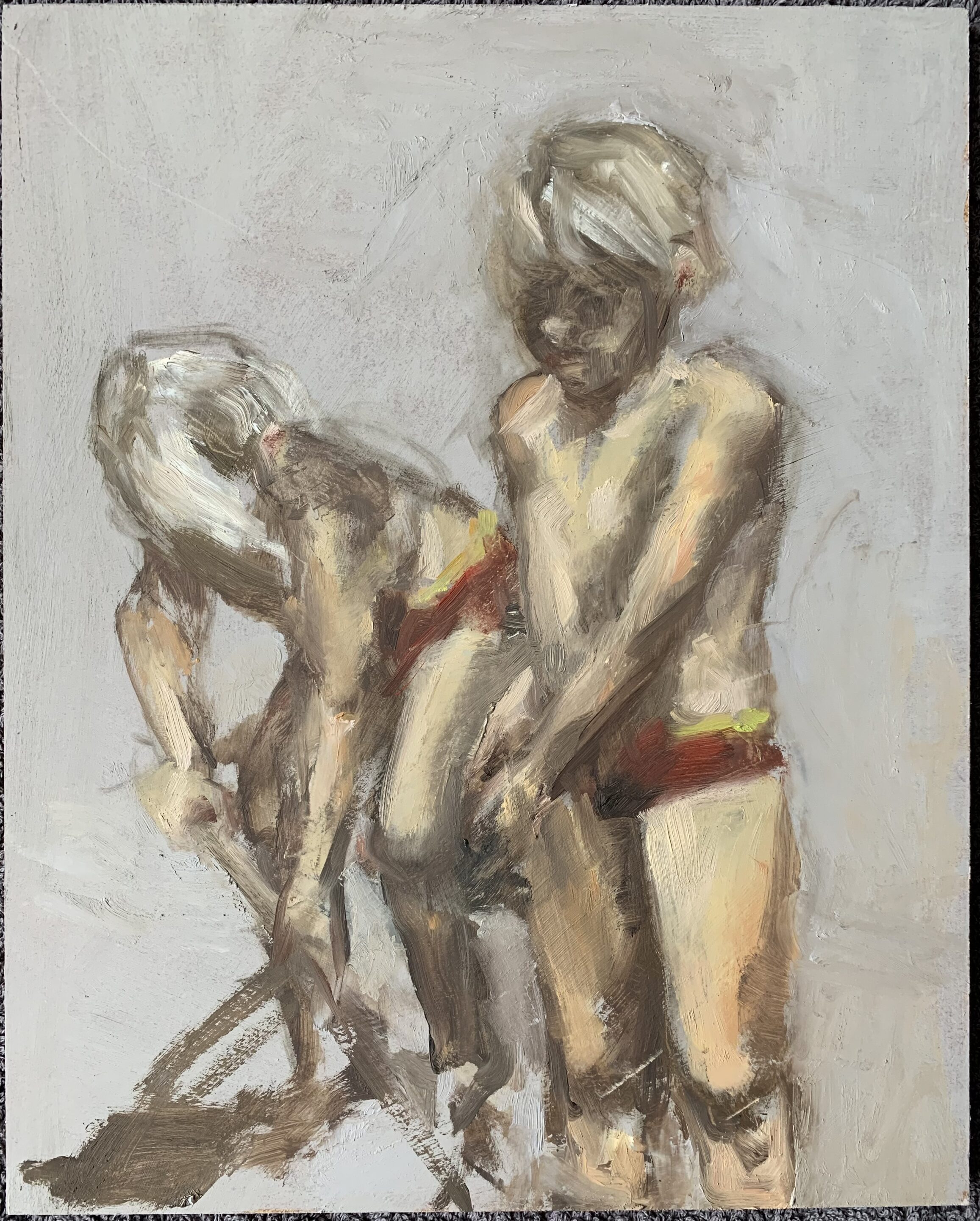Sinds 2024 werk ik met acrylverf, voornamelijk omdat het praktisch is om het werk meteen droog mee te nemen in een reismap. De map is ook de reden dat het meeste van mijn werk een afmeting heeft van 40 cm bij 60cm.